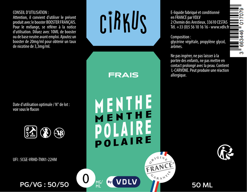 Les e-liquides 50ml Cirkus sont sans nicotine, boostés en arômes et conditionnés en flacons de 70ml pour que vous puissiez venir les compléter avec un Booster Français afin d'obtenir un taux de nicotine de 3,33mg/ml en grand format.
