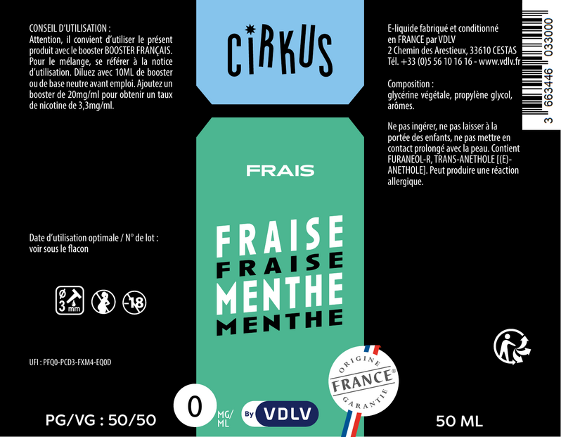 Les e-liquides 50ml Cirkus sont sans nicotine, boostés en arômes et conditionnés en flacons de 70 ml pour que vous puissiez venir les compléter avec un Booster Français afin d'obtenir un taux de nicotine de 3.33mg/ml en grand format