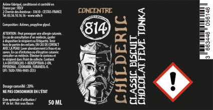 L'arôme concentré 814 "Childéric" en 50ml : un mix gourmand de classic, biscuit, chocolat et fève de tomka. Idéal pour vos grandes préparations DIY.