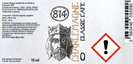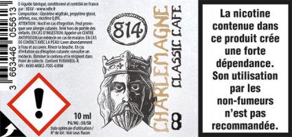 814 "Charlemagne" : une saveur gourmande et réconfortante de biscuit, liqueur de café, classic et sucre roux. Disponible en 10ml avec divers taux de nicotine.