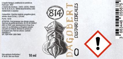 L'e-liquide 814 "Dagobert", proposé par VDLV, est disponible en flacon de 10ml. Cette création se distingue par une saveur combinant la richesse crémeuse d'une custard vanille et le caractère enveloppant des céréales.