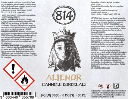 814 "Aliénor" en 50ml : une saveur gourmande de gâteau cannelé, rhum et vanille. Grand format prêt à être boosté (PAB) pour votre vape DIY.