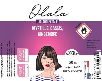 OLALA Liaison Fatale en format 50ml : un trio prêt à booster fruité ( myrtille et cassis) avec une note de caractère (gingembre).
