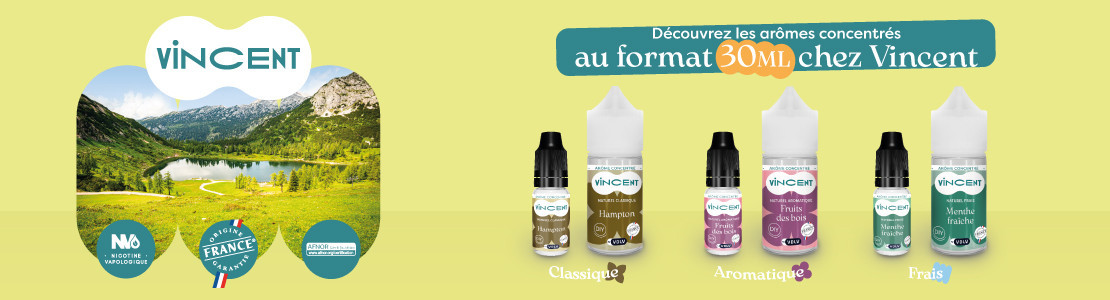 Dans une volonté de satisfaire au mieux vapoteurs et fumeurs, la marque Vincent a élargi son offre en proposant 5 de ses best sellers en formats 30 mL en arômes concentrés.